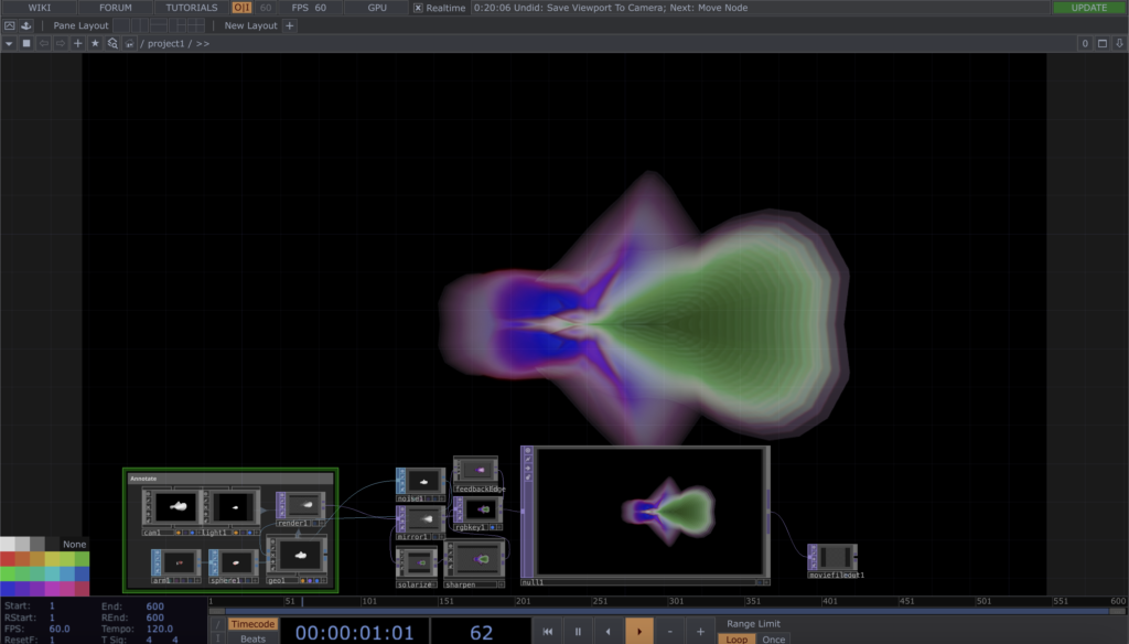 Animation created using SOP to TOP (filter) with recurring feedback layers.
