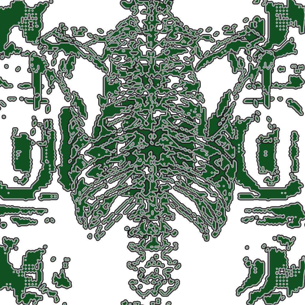 A three vector series began as simple images, built from clean paths and flat compositions. In Photoshop, through a sequence of transformations using mosaic, Gaussian blur, and threshold layering to break the images into fragmented fields of tone and texture. Bitmapped & vectorized the illustrations are ready for anything (laser-cutting, printing etc.) Under shared image description;